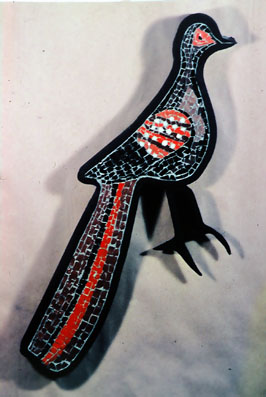 "Ptak" 1975r. Mozaika w obramowaniu z kutego żelaza