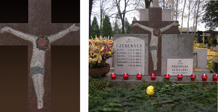Chrystus ukrzyżowany - 1975r. Mozaika na grobie rodziny Czerewskich - cmentarz ewangelicko-augsburski w Warszawie